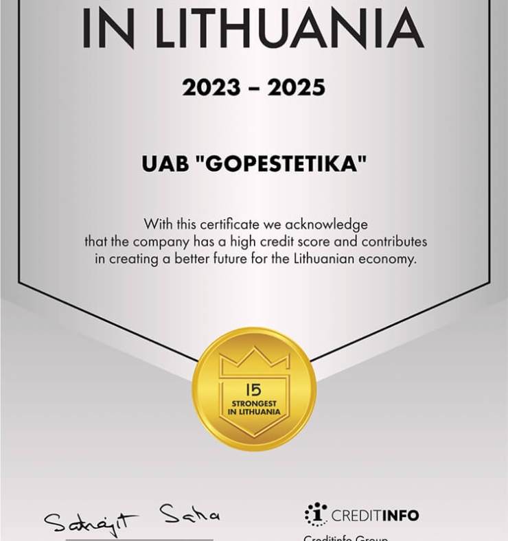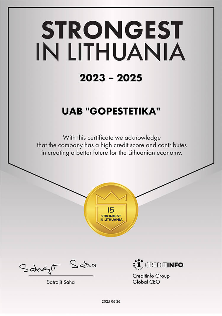 Uzņēmuma reģistrācijas kods: 304552180PVN ID: LT100010979514 Adrese: Vytauto pr. 13 (otrais stāvs), Kauņa, LT-44354Mobilais tālrunis: +37068849989 E-pasts: eshop@gopestetika.lt